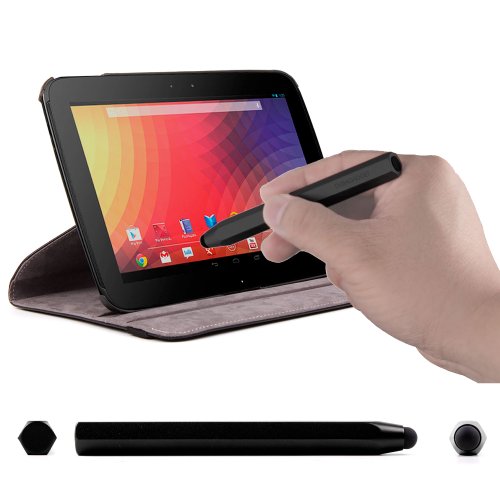 Ⓗ DURAGADGET Housse Etui Rotatif de Luxe en noir et support intégré pour Google Nexus 10 Tablette Android 4.2 Jellybean et Wi-fi - vue horizontale ET verticale + stylet forme crayon en aluminium léger noir BONUS - Garantie 5 ans