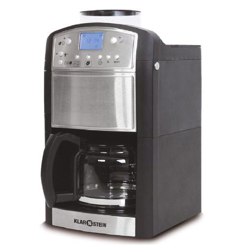 Ⓘ Klarstein Coffeemate - Machine à café automatique avec moulin à grain - Cafetière inox au design moderne avec moulin pour café en grains et en poudre (1000W de puissance ,minuterie , affichage LCD, carafe en verre) inox/noir
