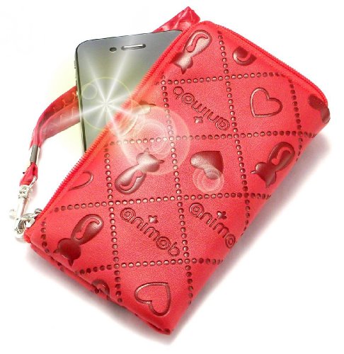 Ⓗ "Animer" Rouge, Pochette avec Glitter Sangle de poignet pour Samsung Galaxy Y Pro B5510.